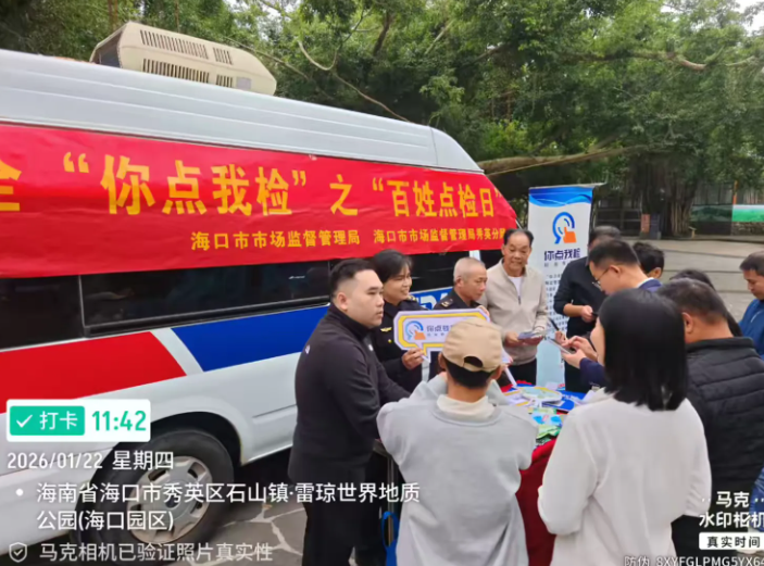 春节前夜,为进一步提拔食物抽检工做参取度,加强人平易近群众对年货食物平安的获得感和对劲度,营制食物平安社会共治共享款式,2026年1月22日,海口市市场监视办理局正在区火山口地质公园开展年货购食物平安“你点我检”之“苍生点检日”宣传勾当。本次勾当依托食物平安“你点我检”搜集系统,以“年货你点我检”为从题,让市平易近群众点选出本人关怀关心的节日食物品种、场合和查验项目。勾当现场,工做人员通过吊挂、发放材料、现场答疑等体例,用通俗易懂的言语向市平易近科普了特殊食物、保健食物等平安常识。同时,普遍宣传了食物平安法令律例及农村冒充伪劣食物整治步履。此外,工做人员还积极“厉行节约、华侈”的餐饮新风尚,并了垃圾分类学问,配合营制食物平安社会共建的优良空气。同时,工做人员还向消费者细致和演示“你点我检 办事惠平易近生”搜集系统的操做体例,邀请市平易近通过微信扫码加入“你点我检 办事惠平易近生”的问卷填报,选出最关心的年货食物品种和食物出产运营场合,认实倾听群众看法和,以便后续针对性地开展“你点我检”勾当。当天勾当放宣传折页、购物袋等宣传材料150份,宣传受众200余人次。此次勾当加深了群众对食物平安学问的领会,提高了辖区群众对食物平安的普遍关心、配合参取管理的认识。下一步,将用更丰硕形式,走深走实,将食物平安监管送入千家万户,自动监视食物平安,配合营制群众安心对劲的食安。办公时间:周一至周五一般上班时间(08!30-12!00  14!00-17!30)!