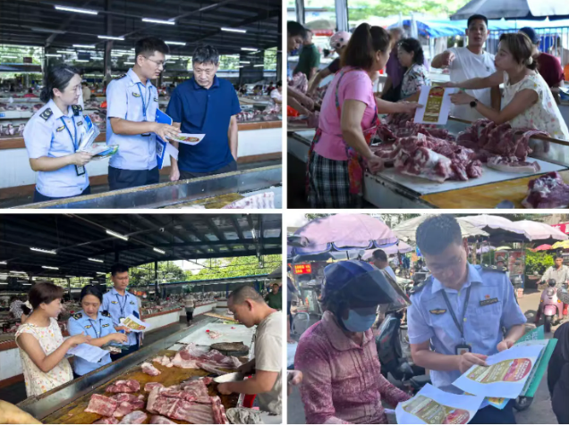 三、开展峻厉冲击肉类产物违法犯罪宣传。市场监视办理局和区农业农村局专家一路到便平易近点的猪肉摊位进行宣传,要求猪肉摊位落实进货检验、索证索票、“两证两章”等轨制,严禁发卖无动物检疫及格证明、来历不明的猪牛羊肉,平安安心的肉类市场消费。同时,工做约谈便平易近点办理方,要求加强办理。区农业农村部分的专家现场向市平易近若何选购新颖猪肉、留意事项并向各摊从和市平易近发放肉类选购、瘦肉精宣传材料。